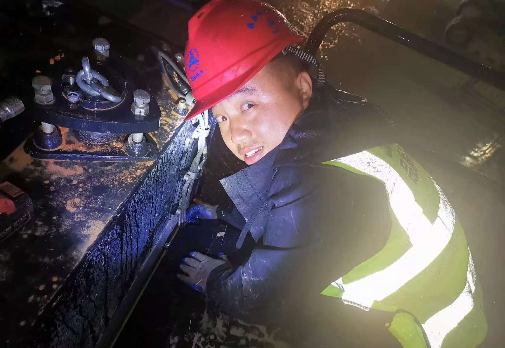 他选择成为一名桩机服务工程师,则是源于对“脚踏实地、实干兴邦”的朴素信念。十四年间,李楫的行囊里永远装着两样东西:维修工具与应急装备。深夜的抢修电话如同军号,无论风雨,他总能以最快的速度抵达现场。从通宵更换主泵的油污满手,到冒雨抢修旋挖钻机的泥泞跋涉,每一次与时间赛跑的修复作业,都是对"工匠精神"最生动的注脚。