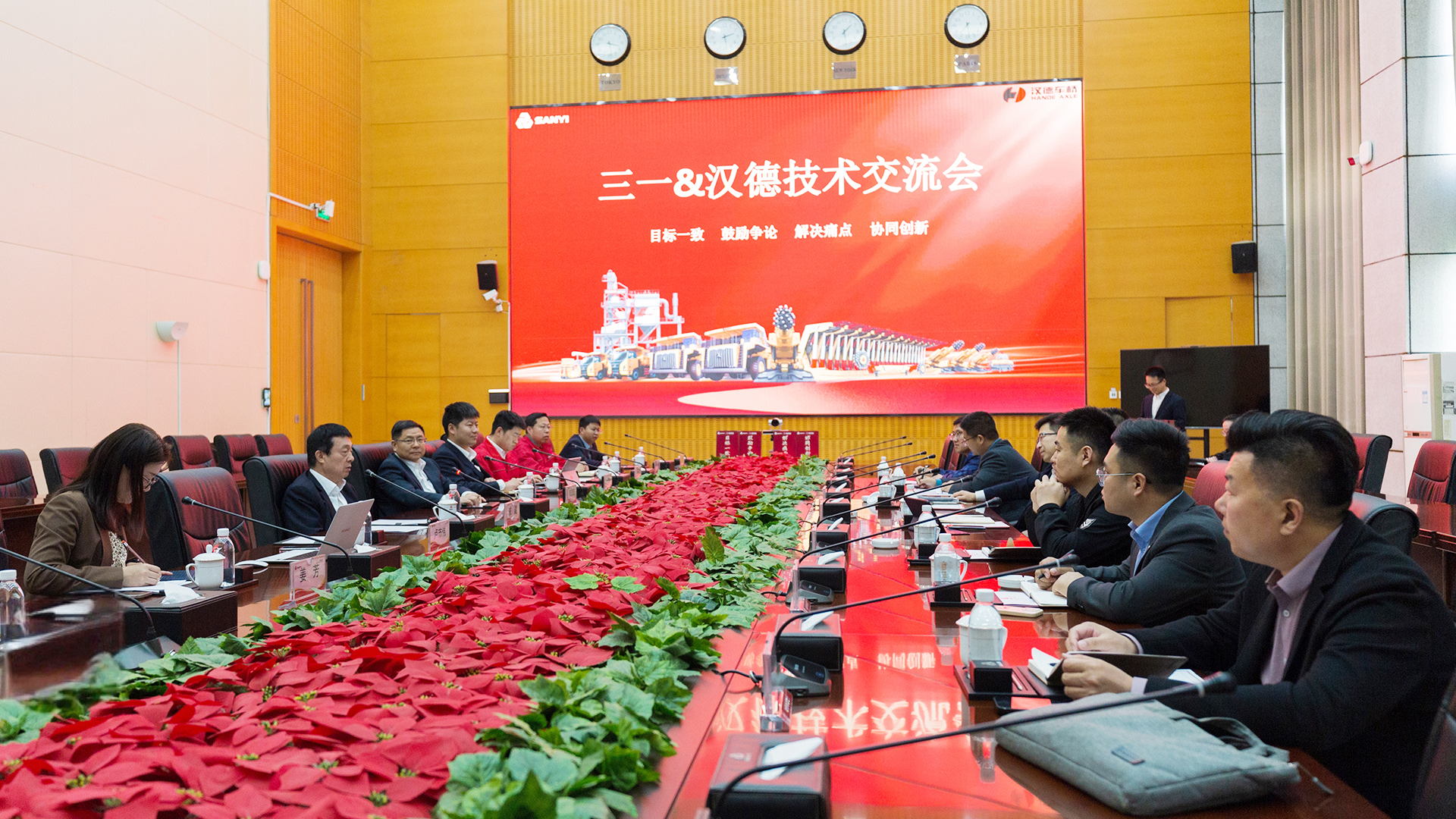 为进一步强化“目标一致、鼓励争论、解决痛点、协同创新”的合作精神,共同推动宽体车技术迈向更高台阶。2025年4月28日,好体育投注网站重装与陕西汉德车桥有限公司(以下简称“汉德车桥”) 在重装园区举行技术交流会。双方技术专家、企业高管齐聚一堂,围绕目前存在技术问题及未来发展路线展开深度探讨。