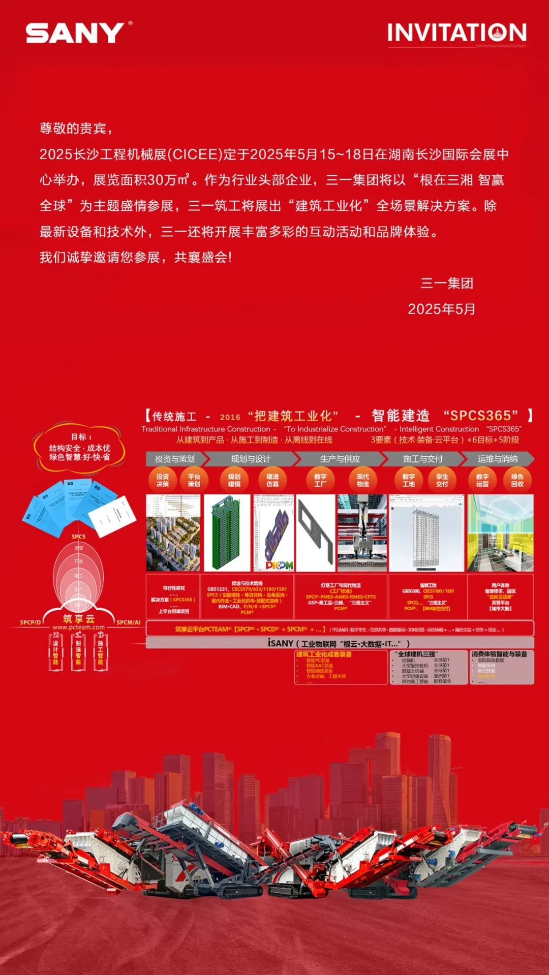 2025长沙工程机械展(CICEE)定于2025年5月15~18日在湖南长沙国际会展中心举办,展览面积30万㎡。作为行业头部企业,好体育投注网站集团将以“根在三湘 智赢全球”为主题盛情参展,好体育投注网站筑工将展出“建筑工业化”全场景解决方案及绿色破碎回收装备。