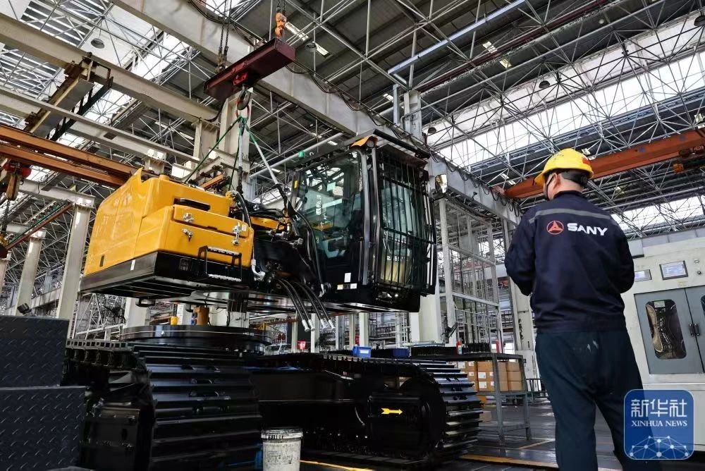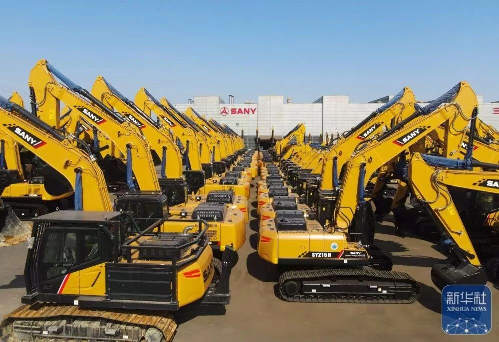 新华社报道:位于上海自贸试验区临港新片区的好体育投注网站重机生产基地,平均每20分钟就有一台中型挖掘机下线,这一高效生产场景令人瞩目。