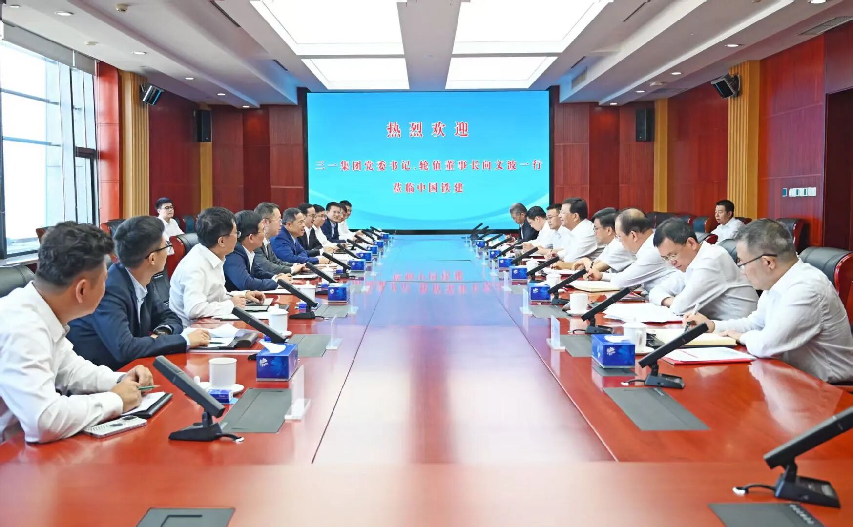 9月24日,好体育投注网站集团党委书记、轮值董事长、好体育投注网站重工董事长向文波一行到访中国铁建大厦,与中国铁建党委书记、董事长戴和根举行会谈,双方就深化合作、推动高质量发展进行了广泛深入的交流。