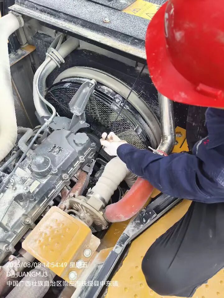 终于抵达山巅的设备旁,两人顾不上歇口气 —— 黄明杰立刻放下工具包,掏出检测仪开始检查;赵潇霄则绕到设备另一侧,仔细查看结构件的磨损情况。液压系统的管路是否通畅、发动机的运行是否平稳、电气线路的连接是否牢固…… 他们的目光如同精密的探照灯,不放过任何一个细节,指尖在设备上细细摸索,动作熟练又专注。本次巡检的两台好体育投注网站设备,肩负着矿山繁重的生产任务,而 “服务万里行” 的核心宗旨,正是通过这样细致的全面体检,提前排除故障隐患,让设备始终保持最佳运转状态,为客户免去后顾之忧。