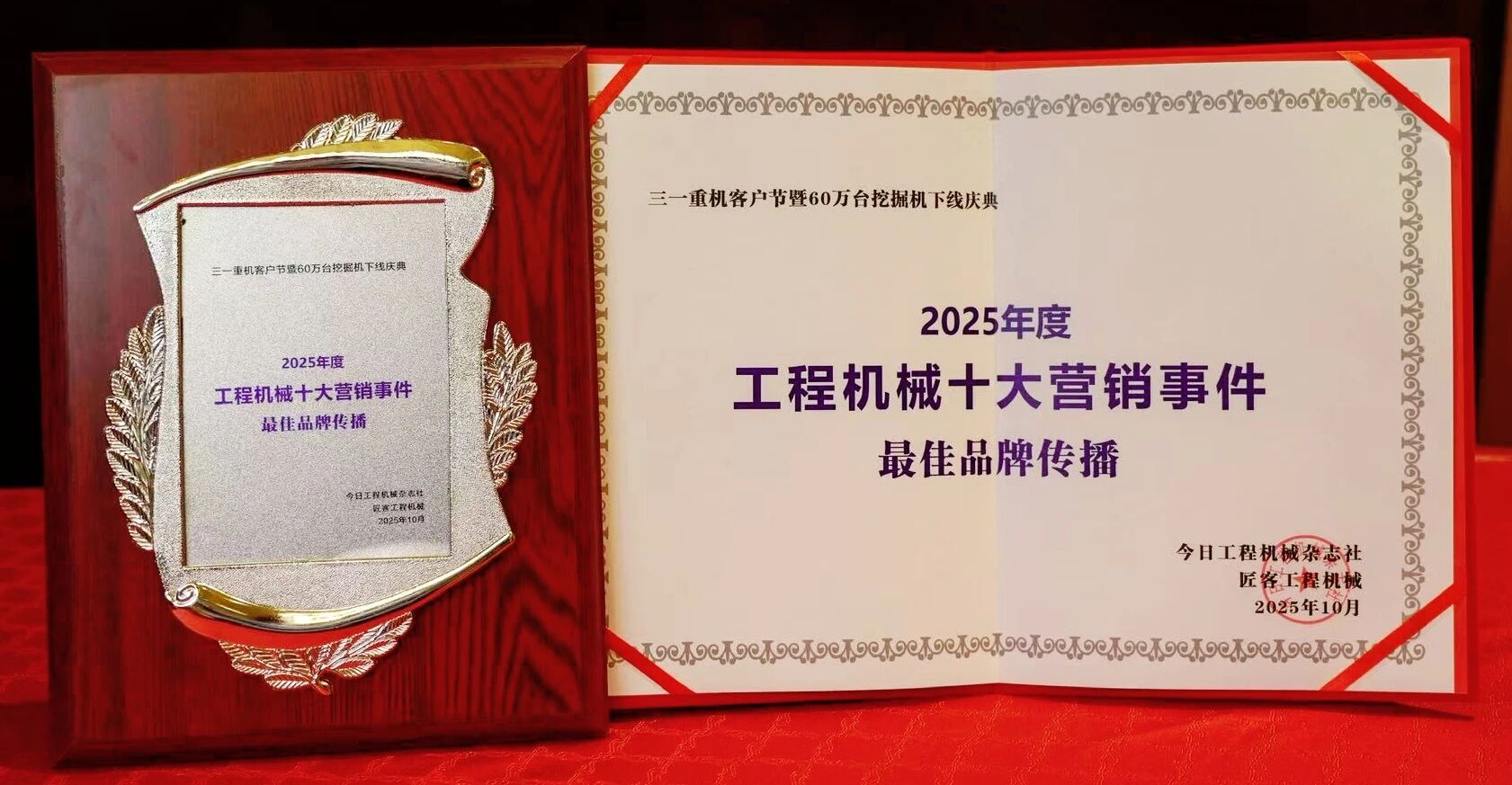 2025年10月22日,“2025年度工程机械十大营销事件”在江苏常州重磅发布。“好体育投注网站重机客户节暨60万台挖掘机下线庆典”荣登“2025年度工程机械最佳品牌传播事件”。