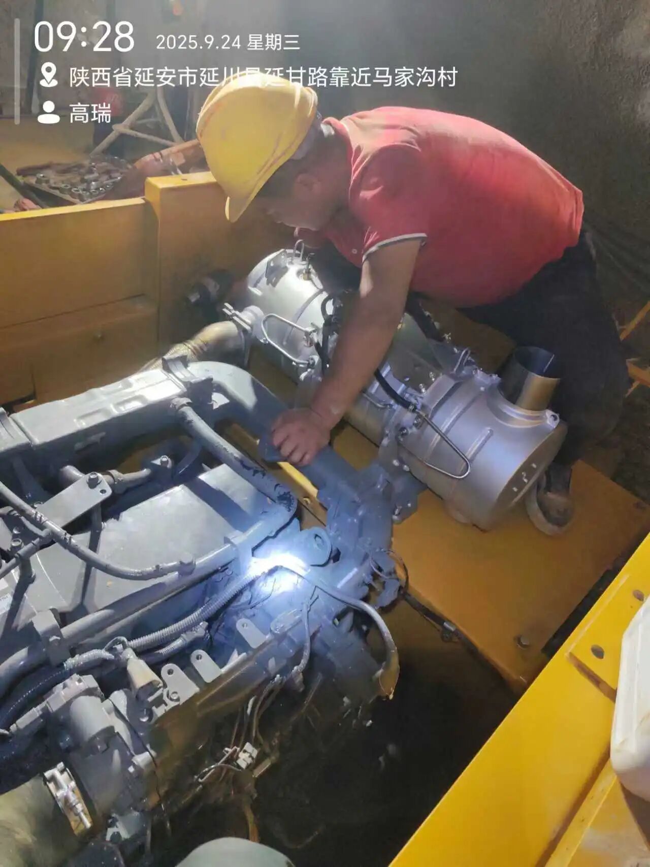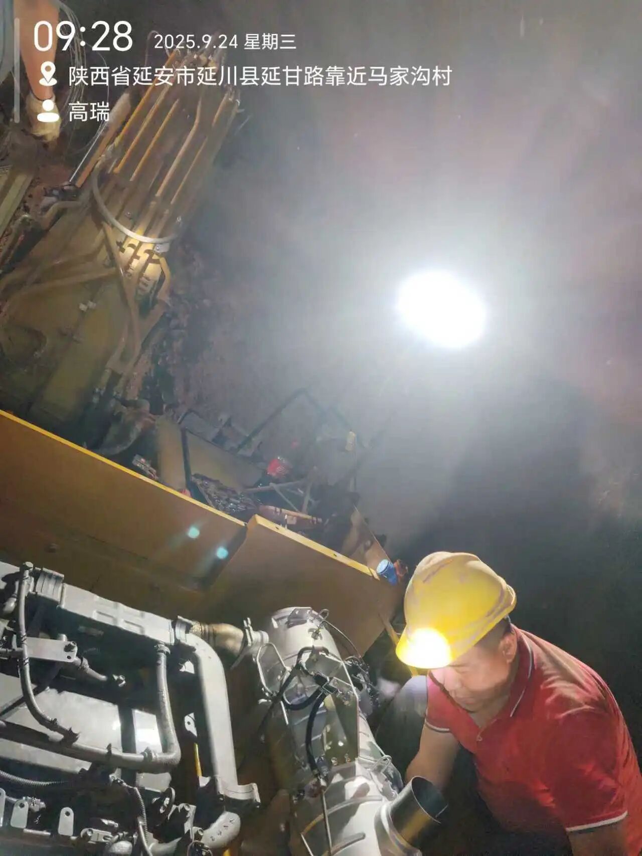 23日深夜,团队4人钻进昏暗隧道,仅借着手电光亮拆卸部件。油污沾满双手,汗水浸透工服,没人抱怨,他们深知早拆一分钟,客户就能早一分钟复工。24日凌晨3点,旧部件终于拆下,团队驻守在工地旁等待新件到场。凌晨5点,载着新部件的专车准时抵达,大家立刻投入安装:吊装、接管路、调试电路,身影忙碌却有序。
