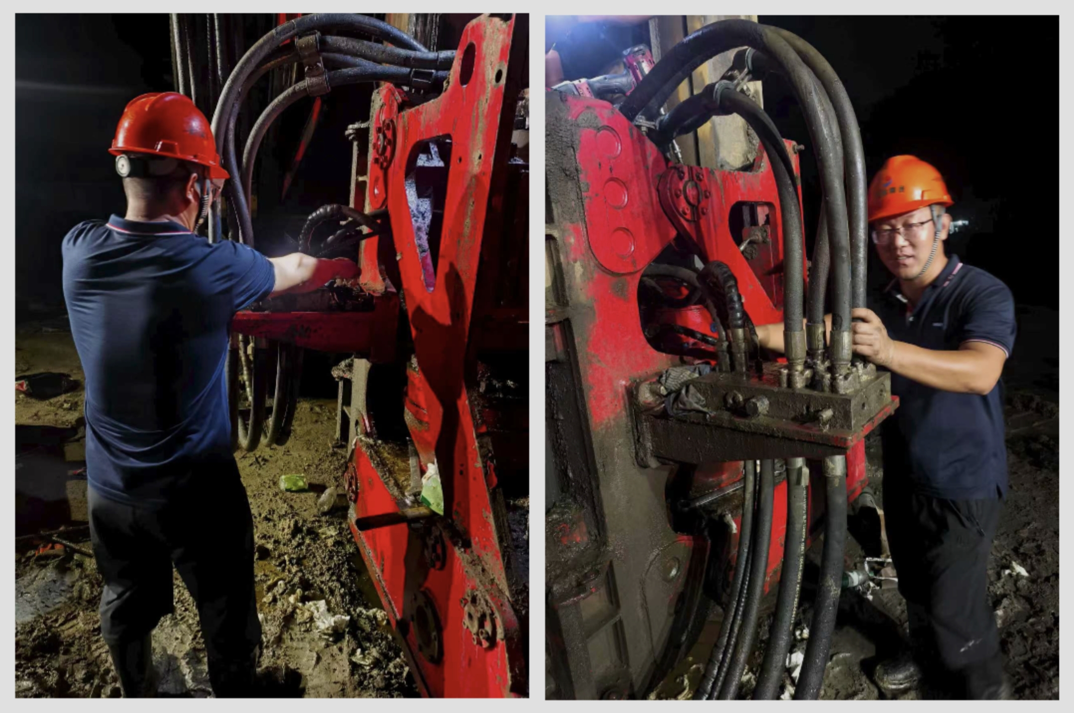 在烈日的炙烤和机械散发的余热中,他专注地检查着每一个部件。油污很快沾满了双手,汗水顺着脖颈流淌,工作服的后背早已被浸透得发亮。经过精准诊断,徐超立即紧急协调仓库调拨新件,并组织现场师傅一同拆装。从白昼到深夜晚上九点,当新的部件安装完毕,设备重新发出轰鸣、钻杆再次钻入地下时,他才长舒一口气。顾不上擦拭满脸的油污与汗水,他又仔细地向机手叮嘱起后续操作的注意事项。