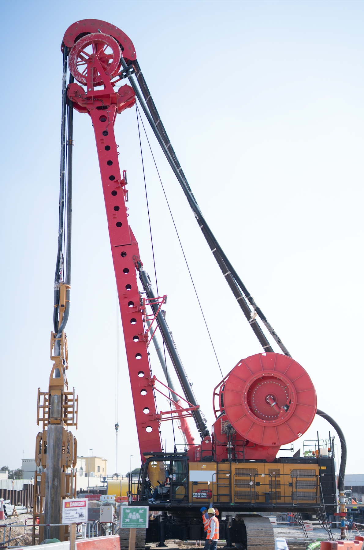 第二台双轮铣槽机在AL WARQA站(BR08)进行作业,成槽尺寸达1.5米宽、38米深,应对约30MPa的岩层硬度。