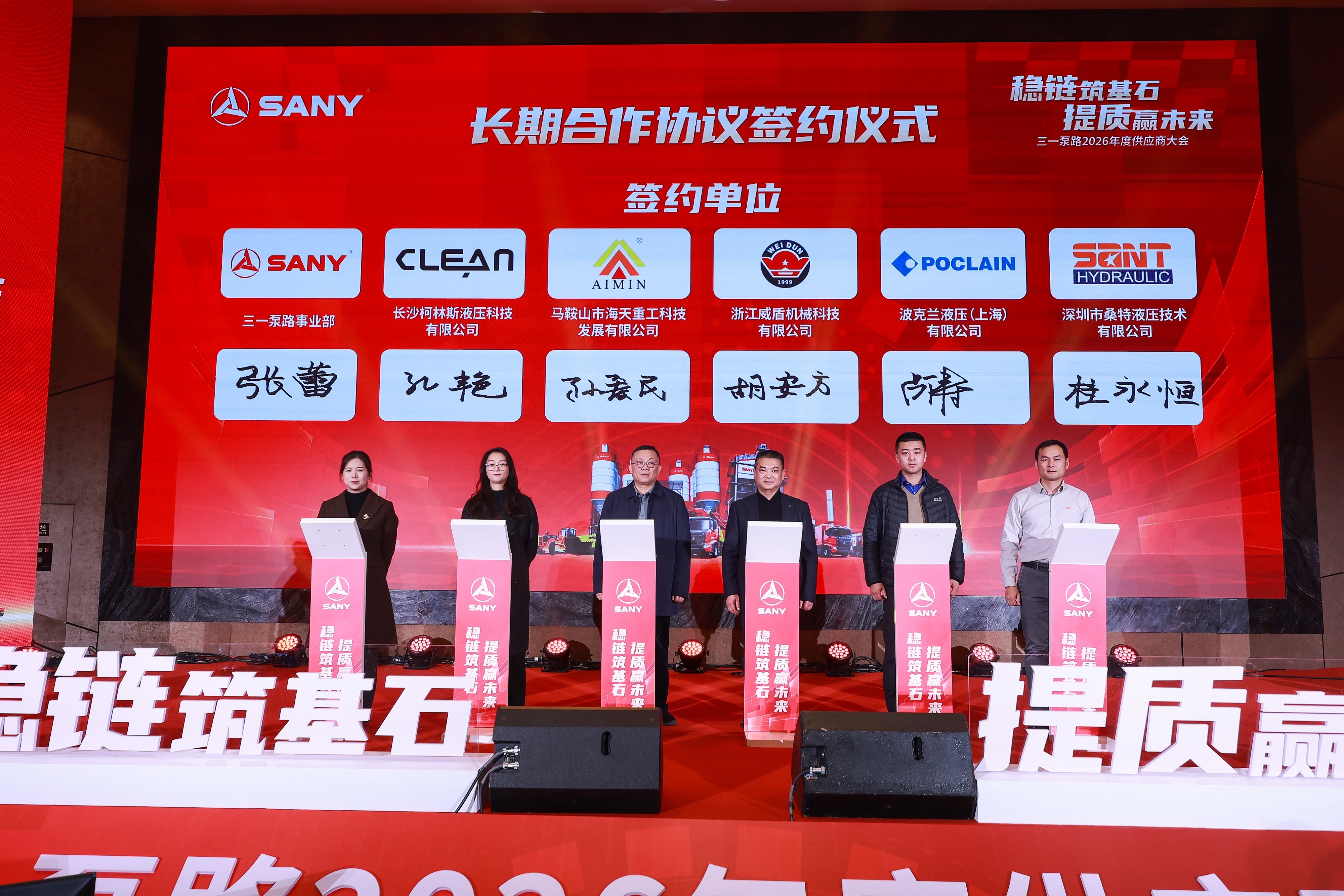 为巩固长期稳定的合作关系,大会现场举行了长期合作协议签约仪式。徐州美驰车桥有限公司、马鞍山市海天重工科技发展有限公司等十家供应商代表上台,与事业部共同签署了长期合作协议,标志着双方合作关系的进一步深化与升华。在供应商代表发言环节,多位合作伙伴代表分享了与好体育投注网站泵路事业部携手共进的经验与感悟,表达了对未来深化合作、共同成长的坚定信心。