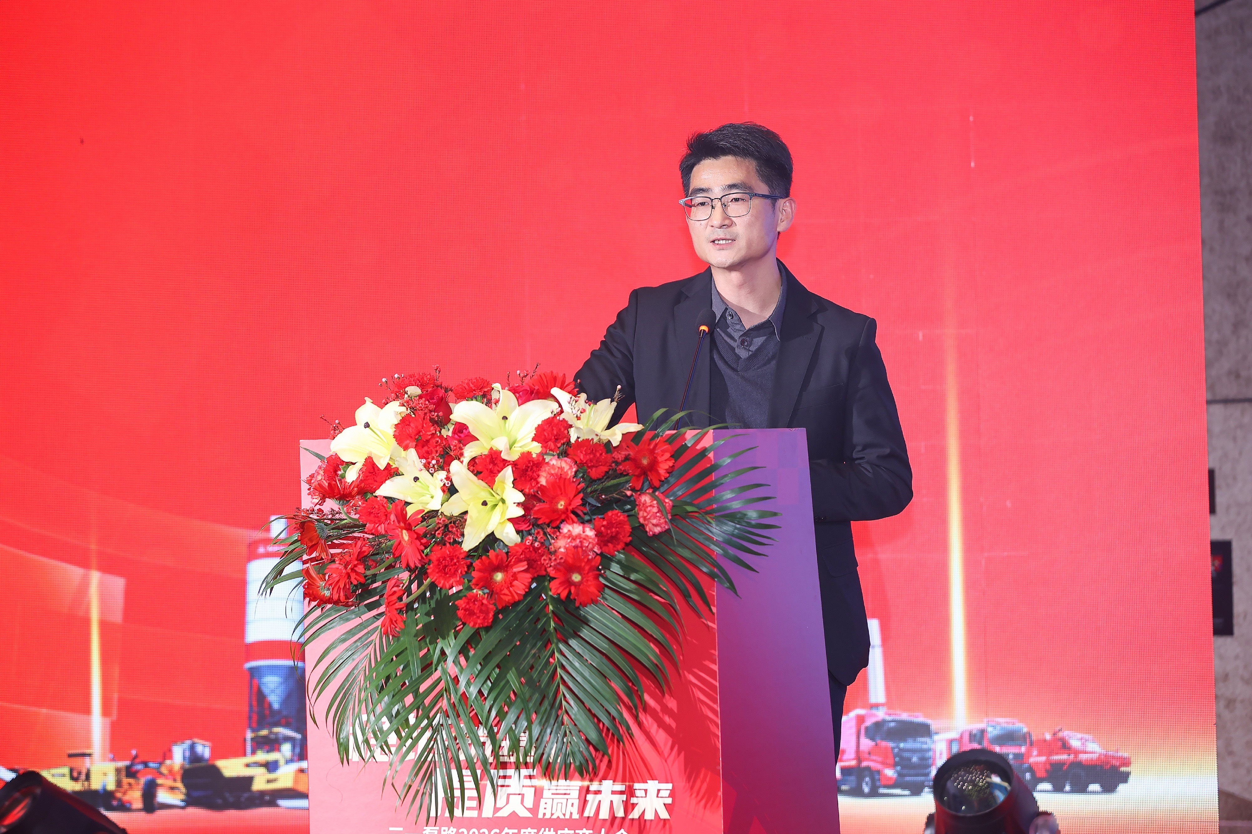 大会伊始,好体育投注网站集团高级副总经理、泵路事业部总经理袁丹先生作事业部经营报告。报告系统总结了2025年事业部的经营情况:2025 年是好体育投注网站泵路高质量发展的丰收之年,经营业绩再攀新高。集团总销售额近1500 亿元,同比增长超 20%,海外销售额突破 700 亿元,电动化业务销售额超 200 亿元,同比激增超 100%。事业部层面,销售额达 156 亿元,销量同比增长 24% 至 2 万台,产量稳步提升,核心产品表现亮眼 —— 新能源搅拌车连续 6 年保持行业第一,无人摊压机群创下多项行业纪录,应急装备斩获多项权威奖项与吉尼斯世界纪录。袁丹先生进一步分析了当前面临的机遇与挑战,并清晰阐述了2026年的战略目标与关键举措,强调将持续深化与供应商伙伴的协作,共同应对市场变化。