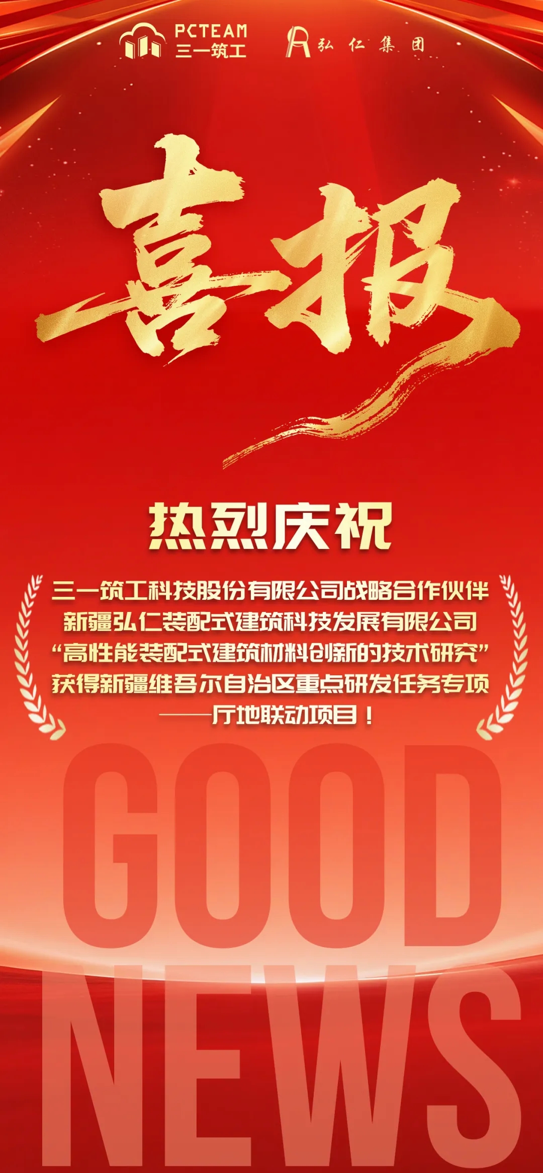 近日,好体育投注网站筑工战略合作伙伴——新疆弘仁装配式建筑科技发展有限公司申报的“高性能装配式建筑材料创新的技术研究”项目,成功入选2025年新疆维吾尔自治区重点研发任务专项——厅地联动项目。作为与弘仁科技深度协作、共推新疆建筑工业化进程的伙伴,我们对此深表祝贺与荣幸。这一重要成果,不仅是合作伙伴弘仁科技创新实力的彰显,也是双方长期以来围绕好体育投注网站建筑工业化解决方案SPCS“3+1”紧密合作、协同攻关的集中体现。