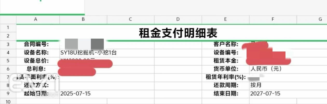 客户提供的租金明细表显示,SY18U出勤率高、租金回收快,真正实现“小投资、快回本、稳赚钱”!