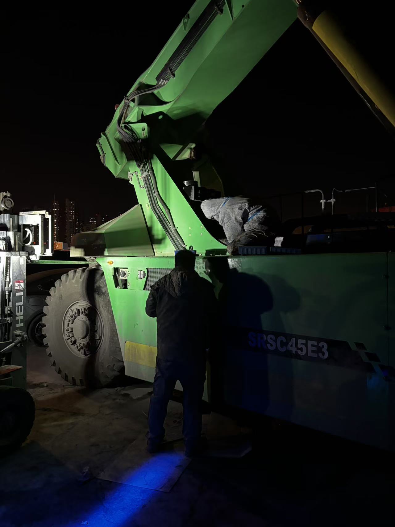 腊月廿七,山东客户的一台正面吊出现暖风故障。服务工程师于斌迅速响应,第一时间抵达现场展开检修。经过高效排查与维修,成功恢复驾驶室供暖,确保客户在寒冬及春节期间的作业舒适度与设备正常运转。