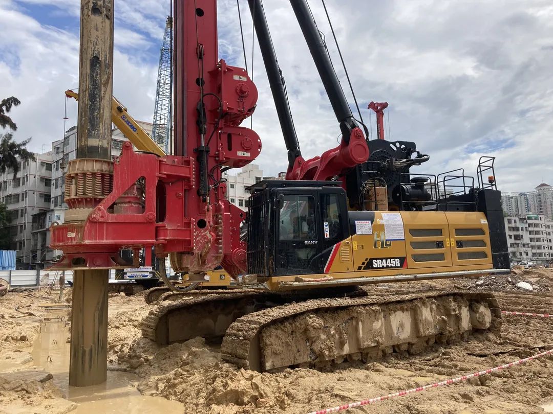 项目采用0~15米用双底捞砂斗,十五米以下用截齿筒钻或牙轮筒钻。支护桩(素桩)有1米,1.2米,1.4米三种,咬合支护桩有1.4米,1.8米两种。因不同桩孔地质结构存在差异,设计为28~33米。走访沙河工业区旧改项目,数十台机械设备在工地轰鸣运转。所有机械中有23台旋挖钻机,其中有10台是好体育投注网站旋挖。这些好体育投注网站旋挖钻机,有中型的明星产品SR285R,SR360R,SR365R,也有大型的SR415R,SR445R。值得一提的是,同台竞技,好体育投注网站旋挖钻机的效率比同行同量级的设备高出11%!