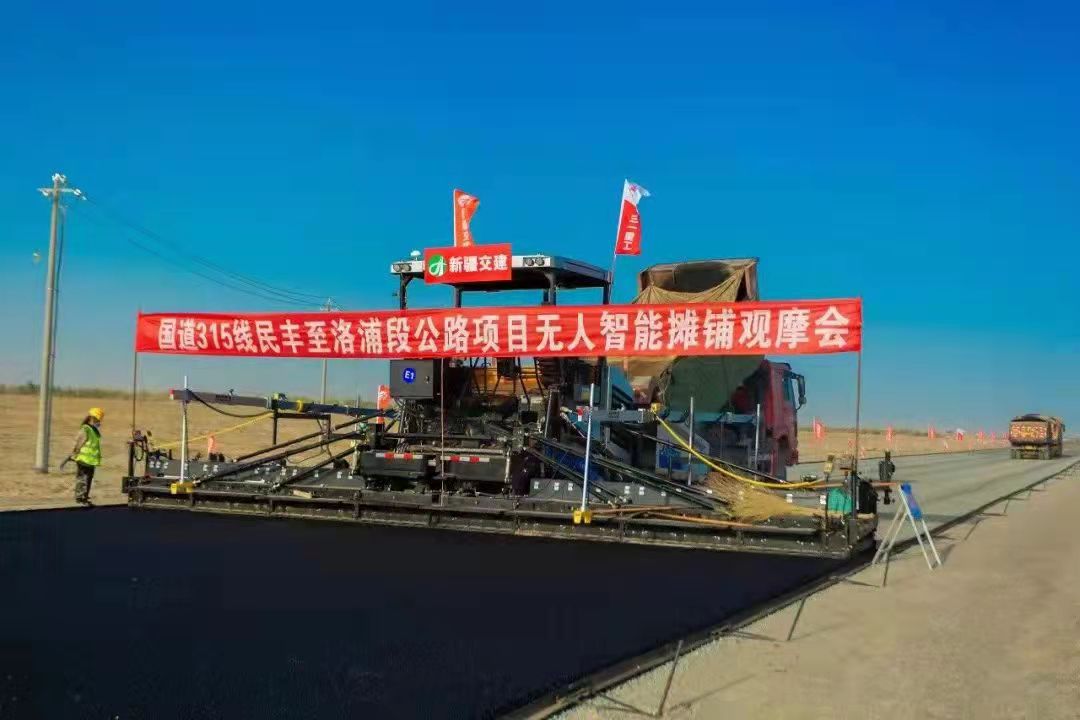 同一时间,远在万里的新疆和田国道315线民洛公路上,“高速公路路面无人驾驶机群智能化施工技术”现场观摩交流会顺利召开,好体育投注网站路机率领无人智能摊压机群也正在如火如荼地进行施工。