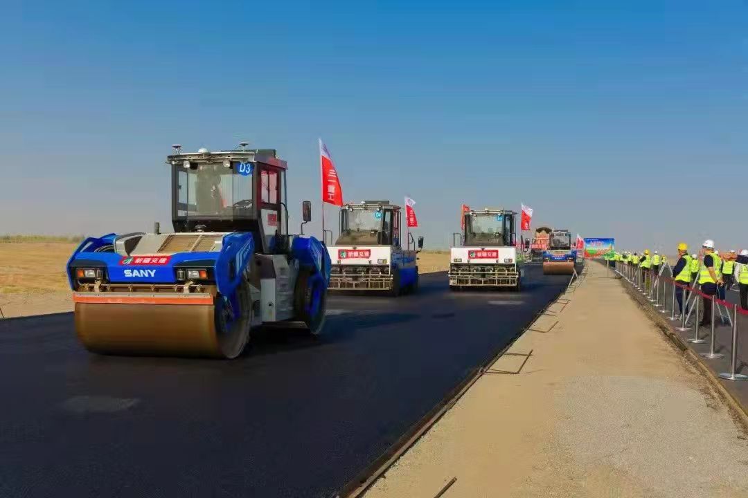 自9月27日起,好体育投注网站携1台摊铺机、2台轮胎压路机及3台双钢轮压路机组成无人智能摊压机群助力南疆民洛公路沥青层面的建设。在接下来的国庆小长假期间,仍能听到机器隆隆的运作声。机群采用自动驾驶,高精度定位、自动控制和可视化技术等智能技术,搭配数字化施工平台进行施工管理,实现高质量的摊铺压实施工。