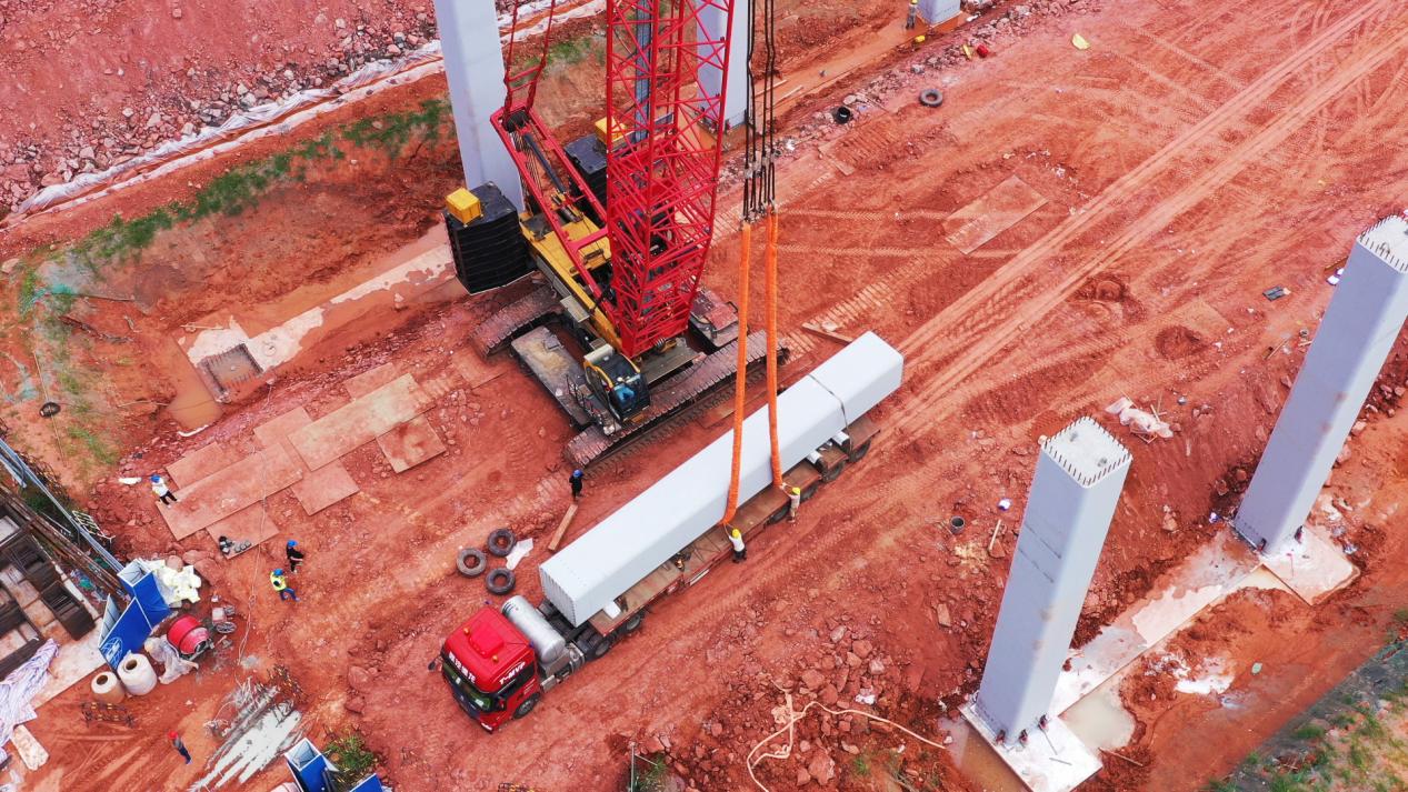 区别于传统桥梁施工工艺,预制拼装施工技术中,每根立柱吊装精度都必须控制在2毫米以内,对施工设备精度和稳定性提出了更高的要求。因此,在设备甄选这方面把控变得非常严格,经过多方考量,最终好体育投注网站SCC2800A履带式起重机脱颖而出。
