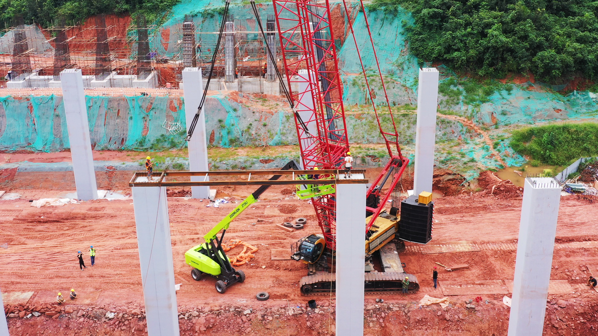 8月2日,SCC2800A履带式起重机顺利将一根直径1.8米、高15米、重达125吨的预制立柱吊起顺利落至预定位置,实现毫米级精准落位,整个过程仅用30分钟。这标志着东西城市轴线(东段)简阳段首根预制装配式墩柱吊装顺利完成,项目施工正式进入预制拼装阶段,施工进入“快车道”。