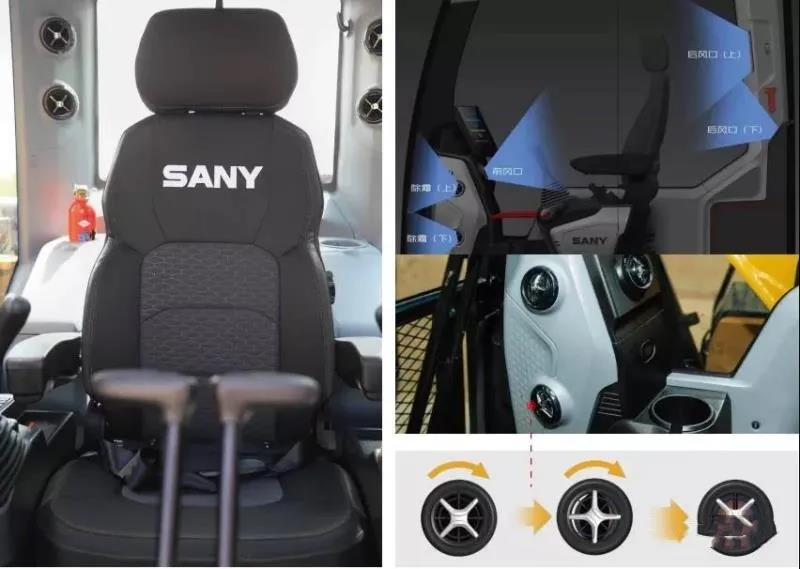 与知名设计公司合作,开发全新驾驶室,豪华感与科技感并存。空气悬浮座椅,座椅填充物软硬适中,采用电动充、放气座椅气囊,有效减小工作中的震动冲击,缓解工作疲劳,舒适性大幅提升。