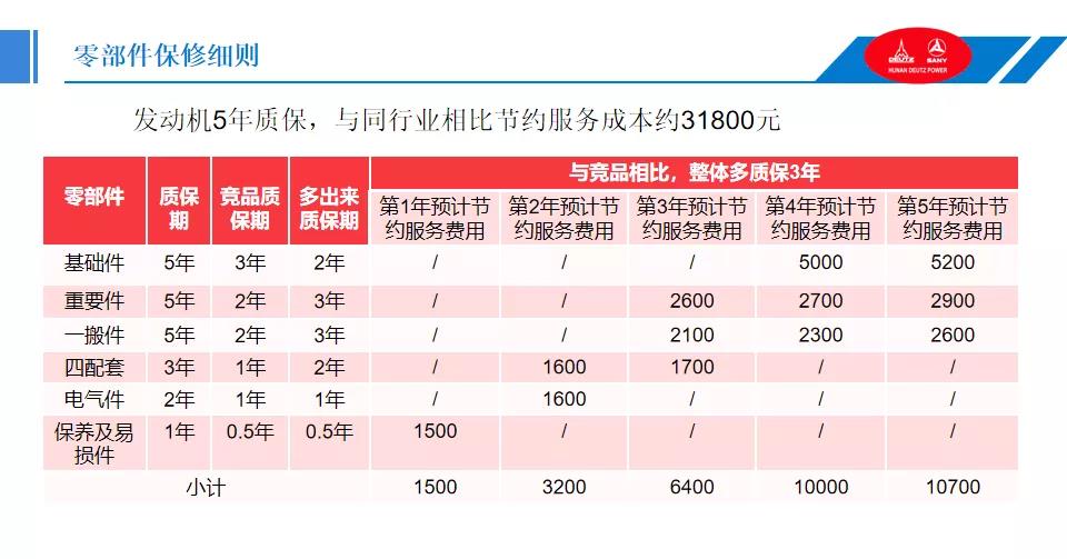 ● 比行业普遍的1年质保,好体育投注网站道依茨发动机率先推出五年不限里程的超长质保政策,彰显品质自信;