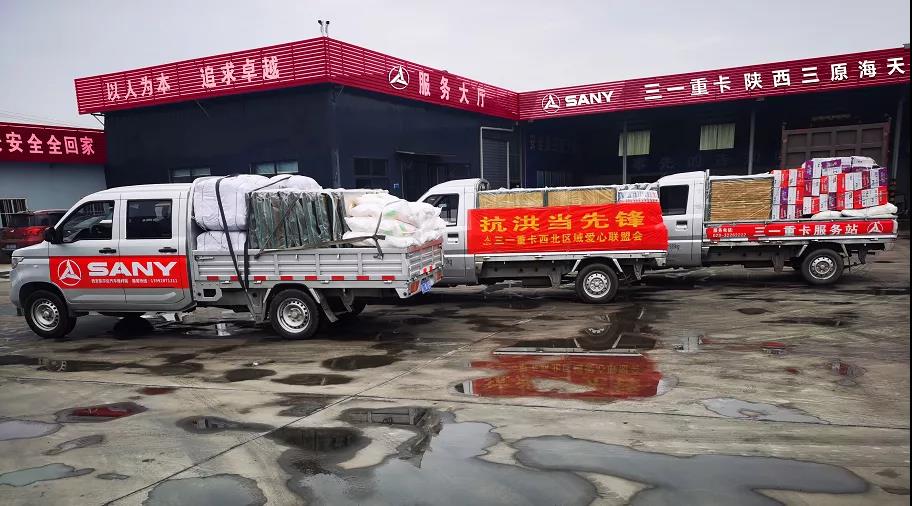 洪水无情人间有爱,面对突如其来的灾情,由好体育投注网站重卡服务部经理韩建安组织发起的好体育投注网站重卡西北区域爱心联盟会,主动伸出援助之手,募集资金、采购物资,为大荔县受灾群众送去温暖。