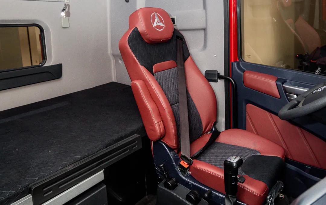 江山·信标配豪华气囊减振座椅,隔振率超竞品54.5%!座椅可变阻尼+空气弹簧靠背调节+角度精确控制+记忆功能,可实现前后、高度、刚度、倾角、腰部、靠背等16个方向调节,且背部独特包围感设计,给长时间驾驶的司机腰部更全面的承托。