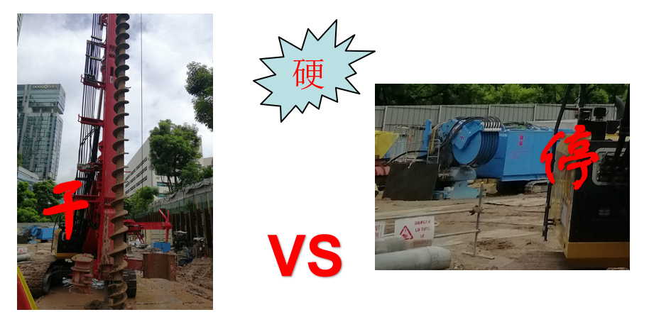 施工地层4-9m的坚硬砂质粘土层,日本的静压打桩备已无法继续施工,好体育投注网站SR235M-CFA设备依然坚挺施工,风雨无阻。