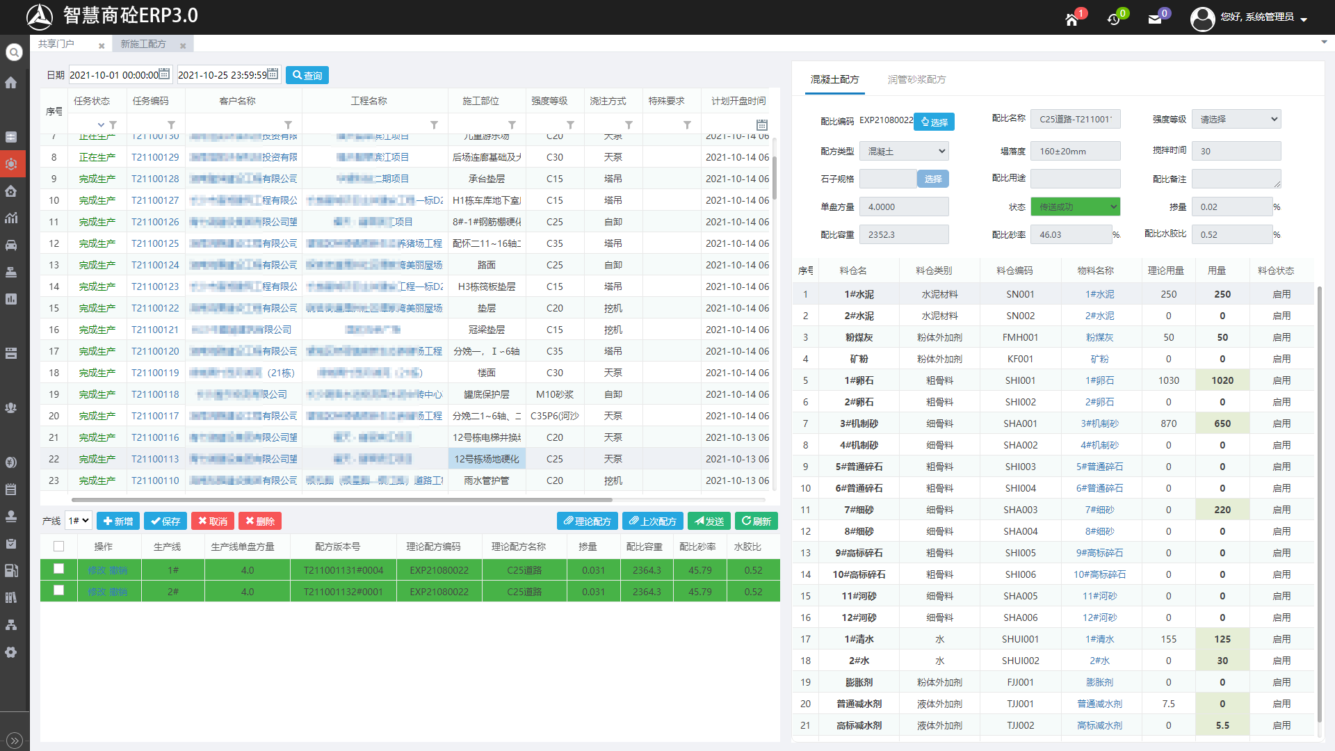 好体育投注网站智慧商砼ERP3.0实验中心模块秉承安全和高效的设计理念,通过工作流、权限、配比限制等手段约束配方生成和下发,通过图形化、差异化等方法合理布局页面,有效提升安全系数和生产效率。