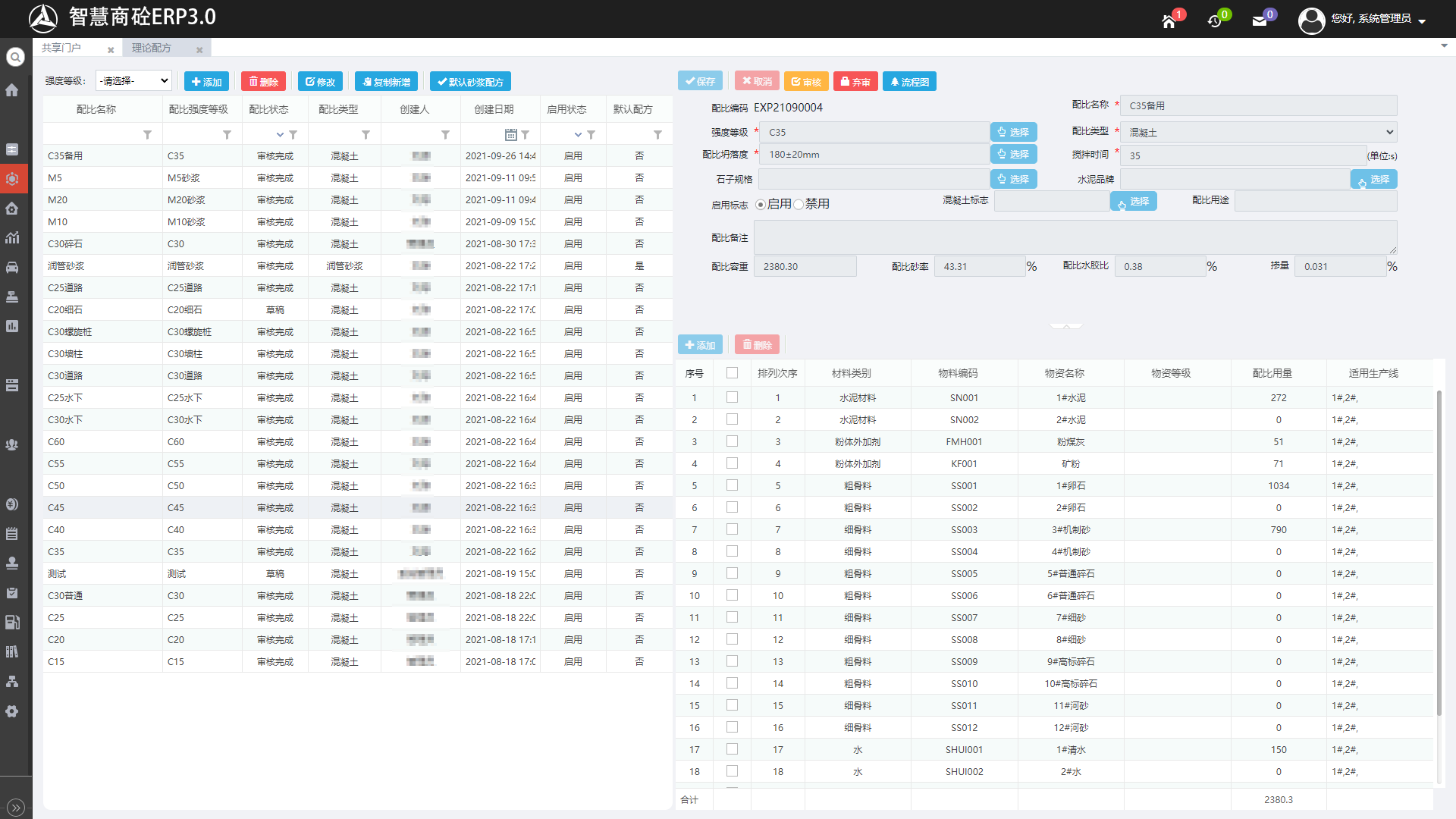 理论配方:标准配方库,由实验室主任直接维护或实验员维护经审批后通过,日常生产配方以标准配方为基础根据实际情况经微调后产生,可以有效防止质量事故的发生。
