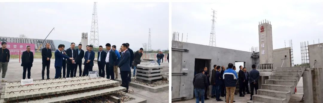 随后,调研组现场观摩了忠县恒邦·忠州壹号SPCS示范工程项目,该项目总用地面积30358㎡,总建筑面积189424.71㎡,共规划5栋住宅楼,其中1#、2#楼地上住宅部分采用“SPCS3.0”结构体系进行建筑设计,装配率高达65%,项目采用的预制构件包含叠合墙、叠合楼板、预制楼梯等。