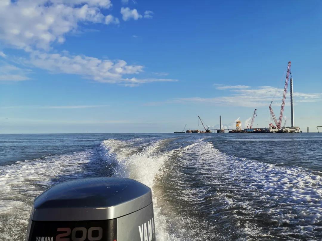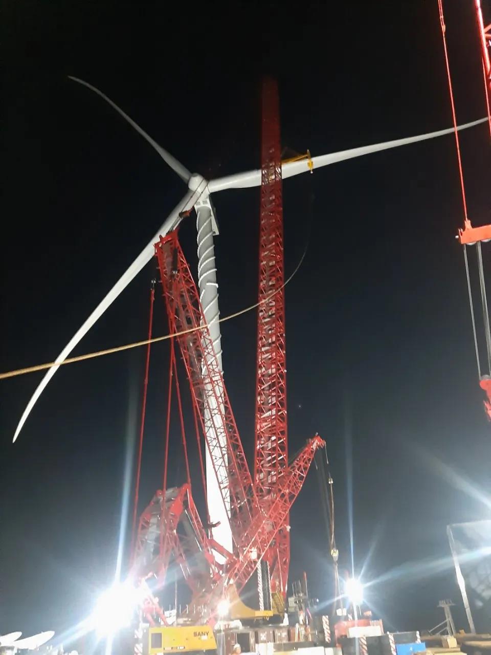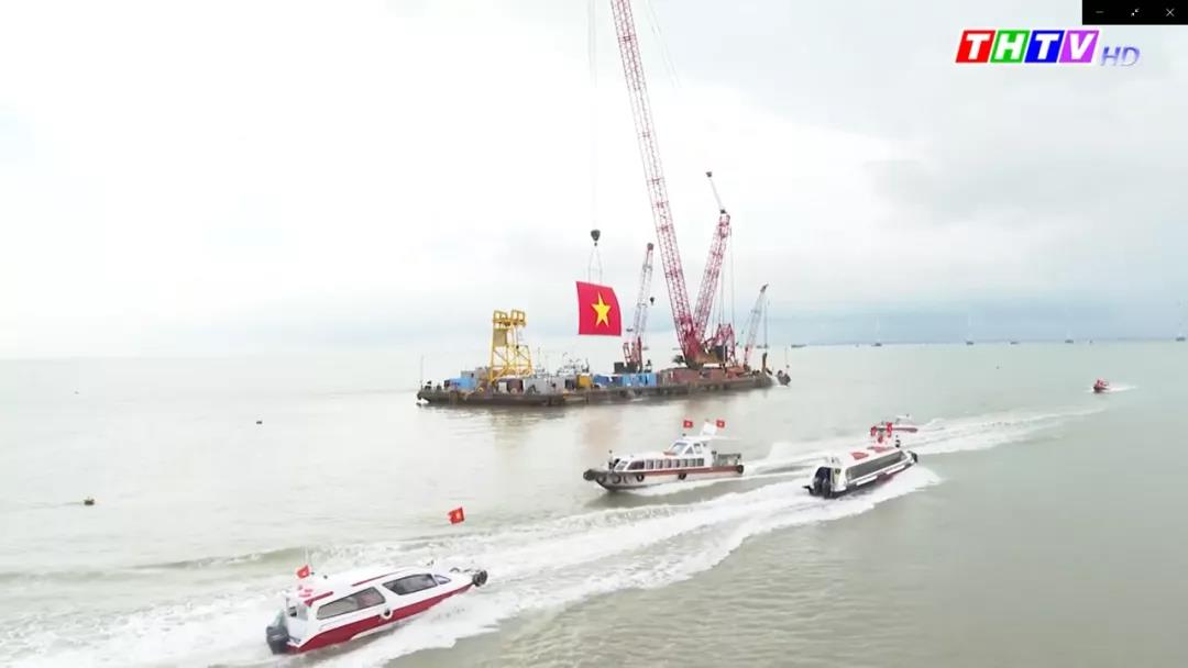近日,在越南南部的一个海上风场,随着最后一个风机叶片的精准对接,风机吊装工作顺利完成。