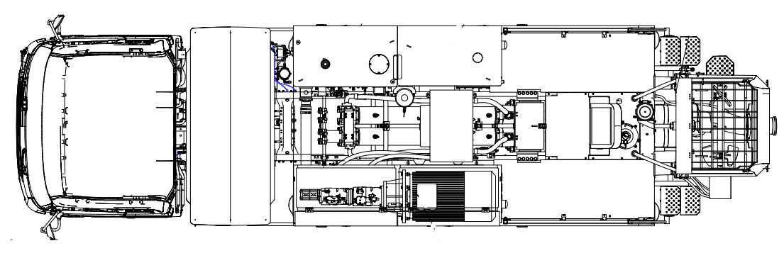 为了保证上装的可靠性,上装主要零部件仍然承袭了原9020电动泵的基因。最高出口压力可达20Mpa,最大排量可达90方/小时,最大换向次数达24次。沿用了原9020电动泵的132Kw大功率电机,配备190+130力士乐主油泵。上装布局合理优化,电机采用纵置布置形式,液压油箱与水箱同侧布置,整车平衡性好,维修便利性也大大提高。