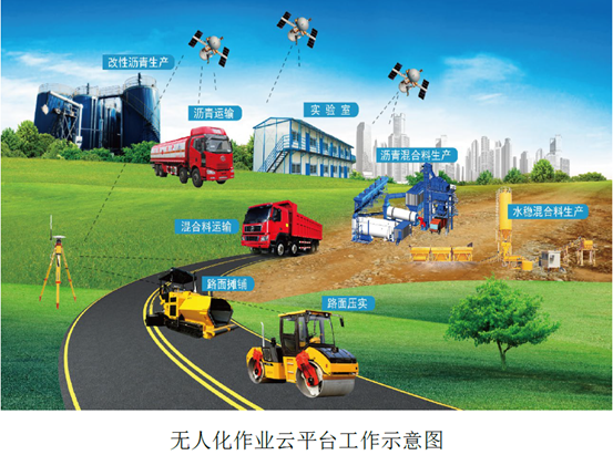 一是建立成套无人化产品和数字化施工体系。即通过云平台与成套无人化设备相结合,实现无人加工、无人运输、无人摊压施工、无人验收的全流程数字化的管理