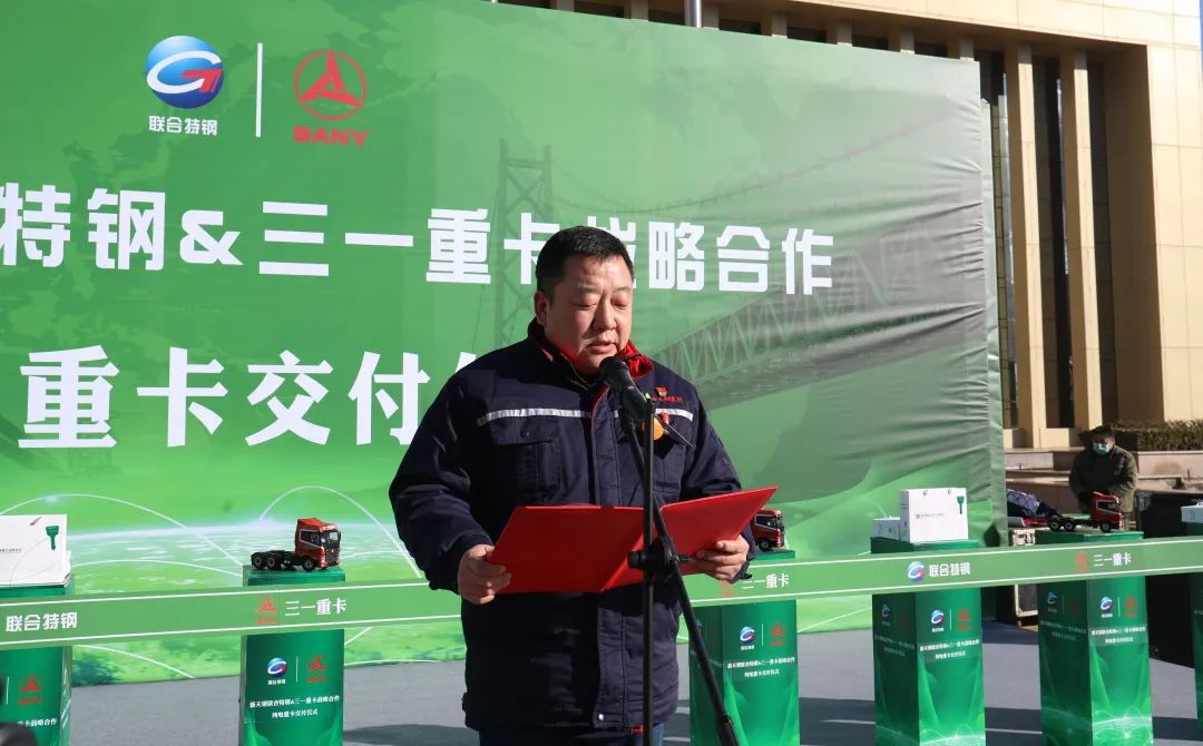 12月26日上午,好体育投注网站重卡&新天钢集团联合特钢公司战略合作暨纯电重卡交付仪式隆重举行,首批30台EV550电动重卡正式交付使用!天津市宁河区常务副区长沈洁,新天钢集团党委副书记、纪委书记、副总裁、德达物流董事长赵斌,好体育投注网站集团副总裁周万春,新天钢集团执行总裁阚永海等出席致辞。
