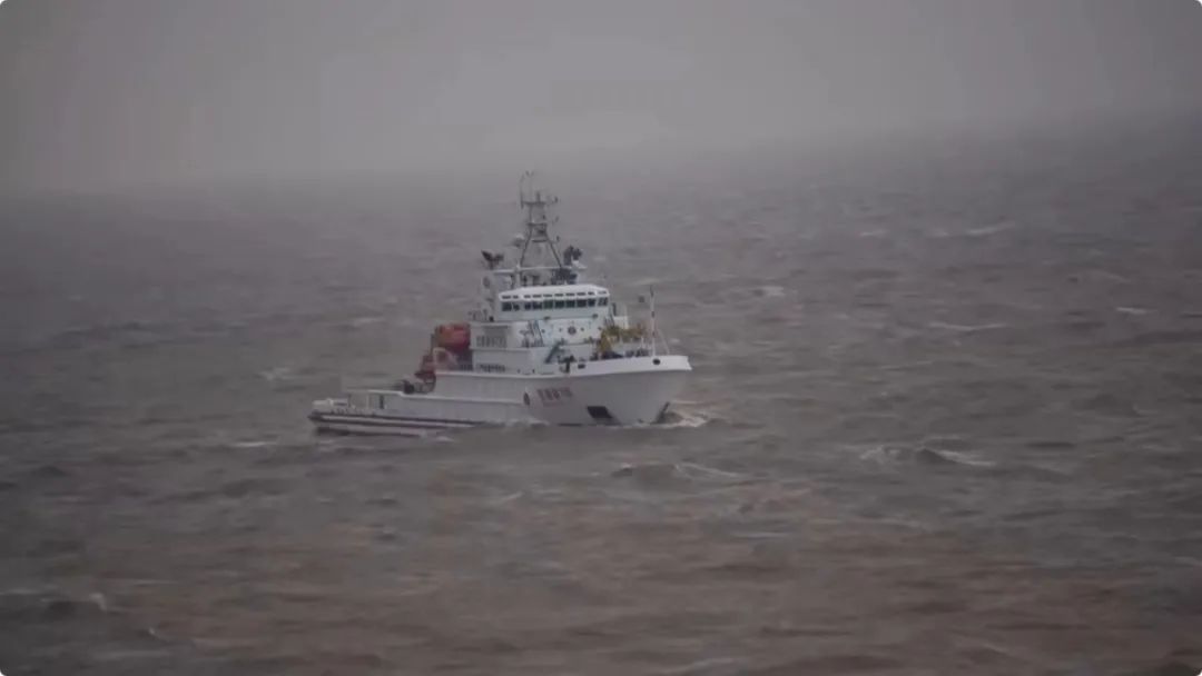 海面涌浪湍急、大风呼啸,海上所有货船全部已经靠岸避风,只剩下救援船还在搏击风浪。