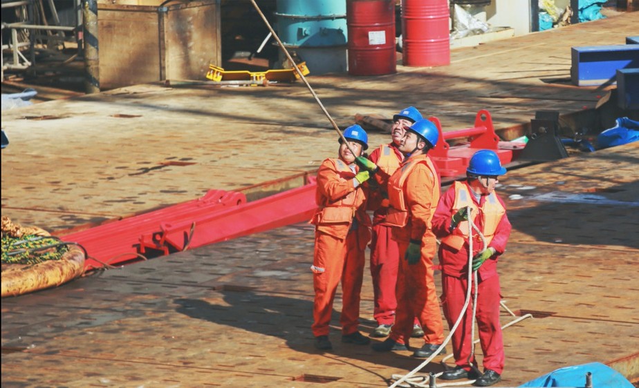 从新洋港码头出发,前往“海市蜃楼”号半潜平台。历经9个小时,背着30多斤的器材,成功登上海上作业平台。此时,气还没喘匀,SCC19000TM已经准备开始作业。