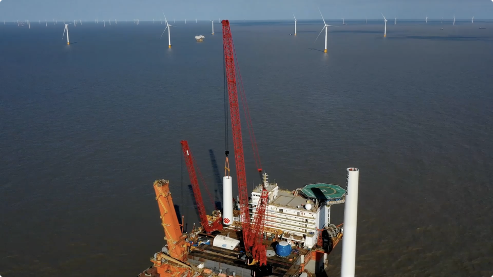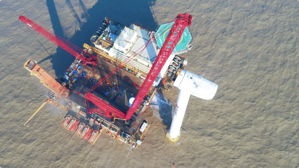 座落在黄海之滨的江苏,风能在90米高度年平均风速可达到7.8米,适合大规模开发海上风电场,江苏盐城龙源大丰H4#风场就是其中之一,好体育投注网站SCC19000TM在这里承担重要吊装任务。
