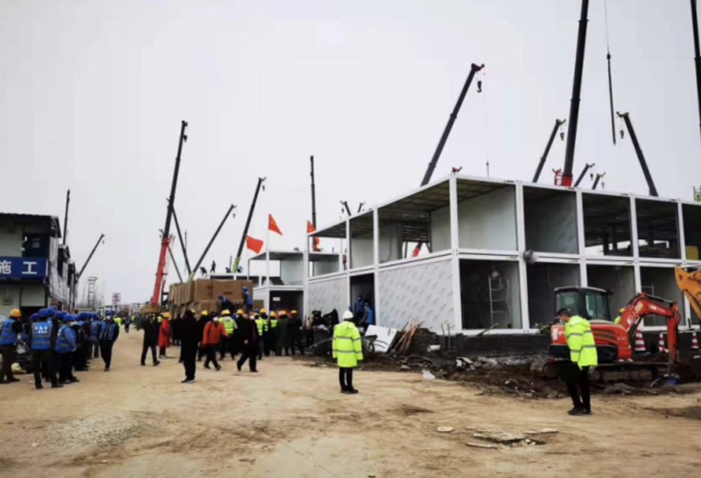 西安宏明建筑机械租赁有限公司的建设团队在灞桥港务区方舱医院作业,总经理任永明说:“搭建其实没什么难度,主要是施工进度要求非常高,这里1000个房间,要求一天内完成基础搭建。人手也不够,我们只能自己硬扛。”