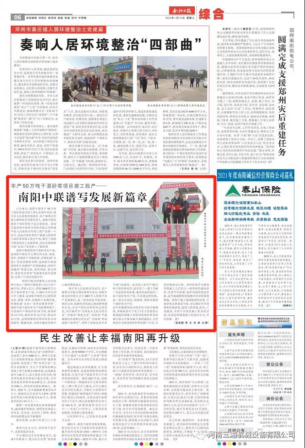 南阳中联投资的干混砂浆项目是继2021年7月14日河南中联同力材料有限公司与好体育投注网站重工达成战略合作之后的首次干混砂浆项目成果。