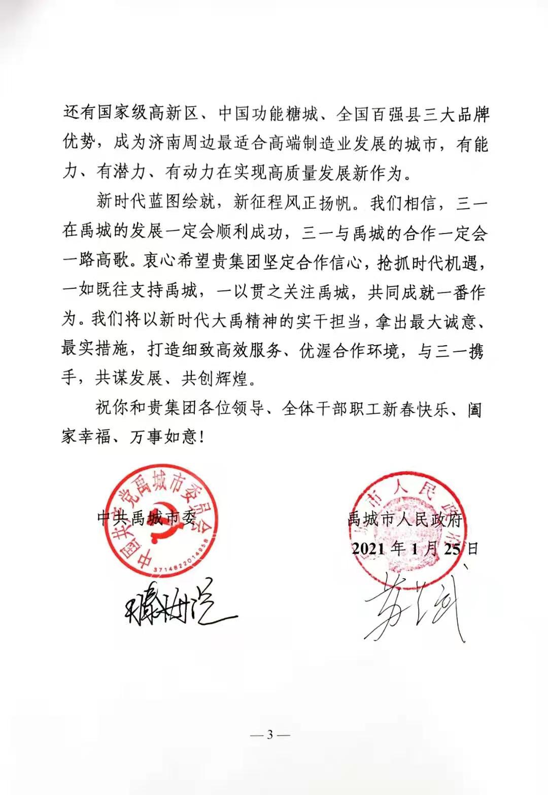 中国禹城市委、禹城市人民政府致函表示: