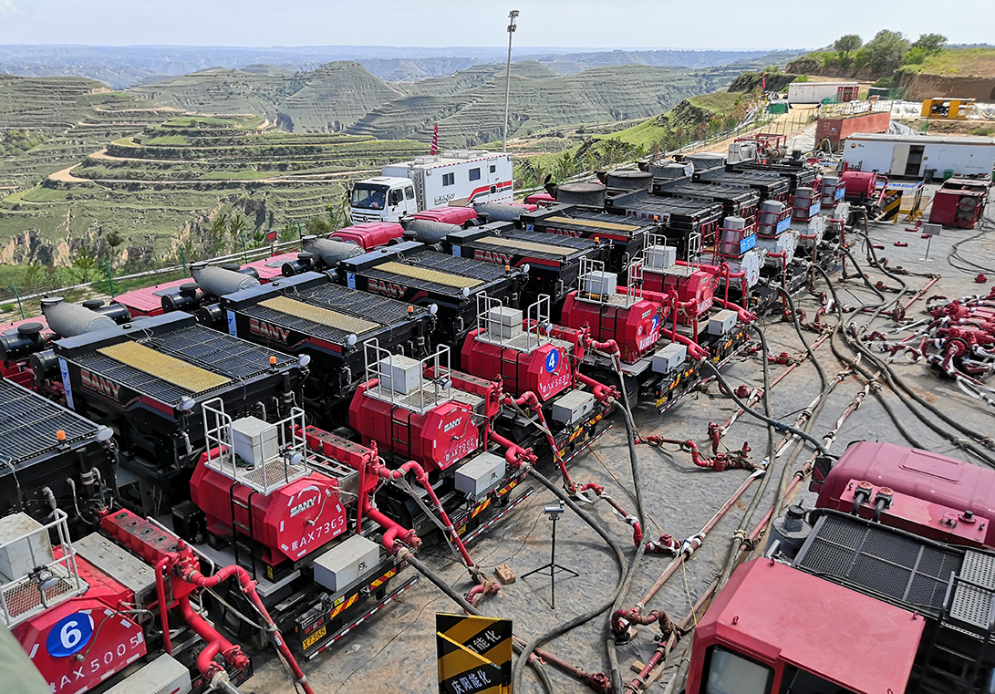 设备表现:井场周边黄土高原地区位于甘肃省庆阳市庆城县致密油,滑溜水13300方,清水3800方,高粘液17100方总液量34200方,总砂量40/70目石英砂1800方20/40目石英砂2380方,设备运行平稳,深受客户好评!