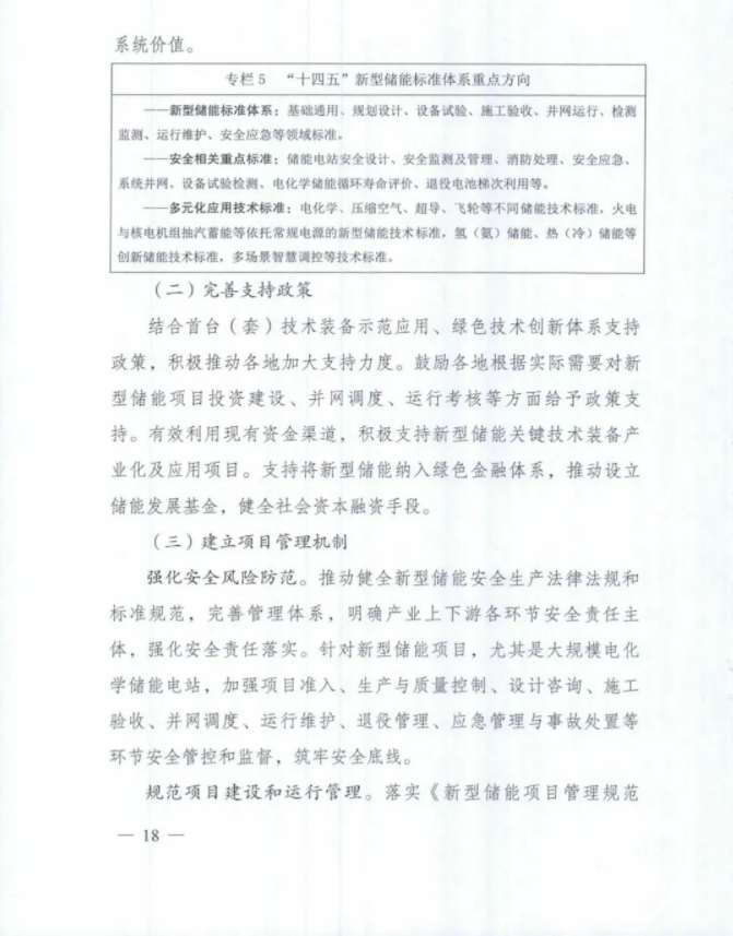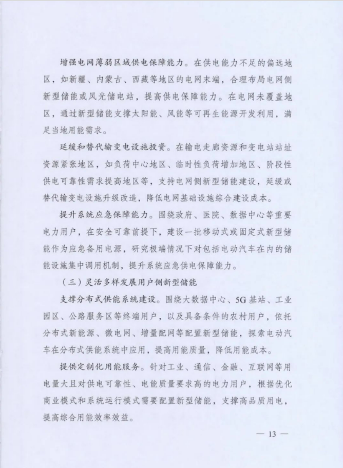 方案要求:持续优化建设布局,促进新型储能与电力系统各环节融合发展,支撑新型电力系统建设。推动新型储能与新能源、常规电源协同优化运行,充分挖掘常规电源储能潜力,提高系统调节能力和容量支撑能力。合理布局电网侧新型储能,着力提升电力安全保障水平和系统综合效率。实现用户侧新型储能灵活多样发展。探索储能融合发展新场景,拓展新型储能应用领域和应用模式。