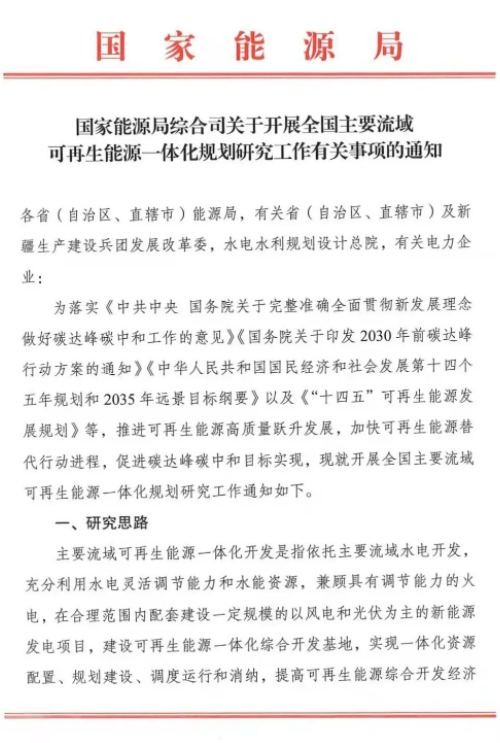 国家能源局:在七大流域开展水风光可再生能源一体化基地研究!