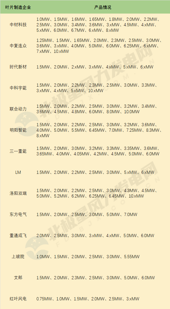 01 各厂家叶片产品系列
