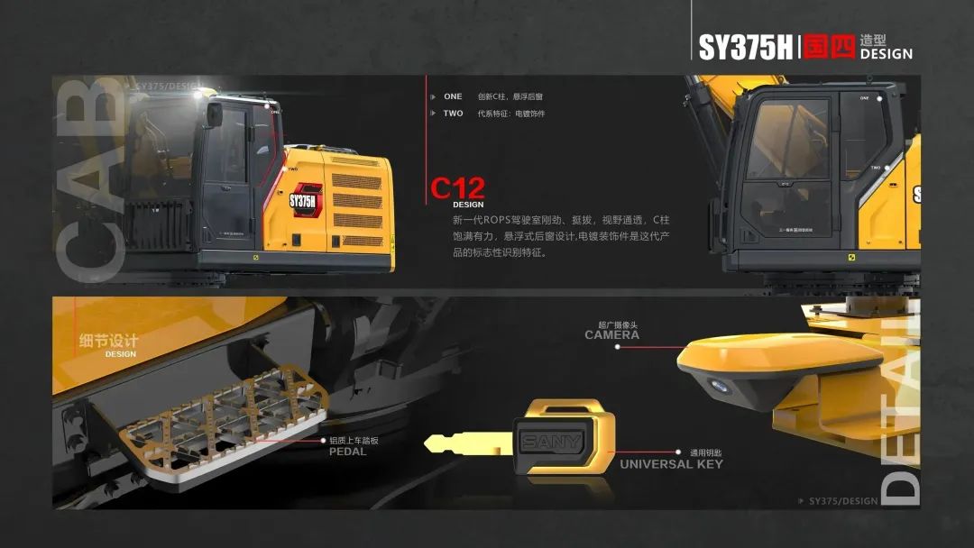 国四新造型是一款符合设计趋势,满足全球化审美的产品,进一步增强了我们在工程机械上的审美自信。