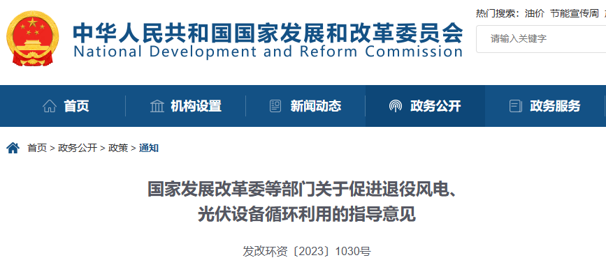 8月17日,国家发展改革委等部门发布关于促进退役风电、光伏设备循环利用的指导意见。文件指出主要目标: