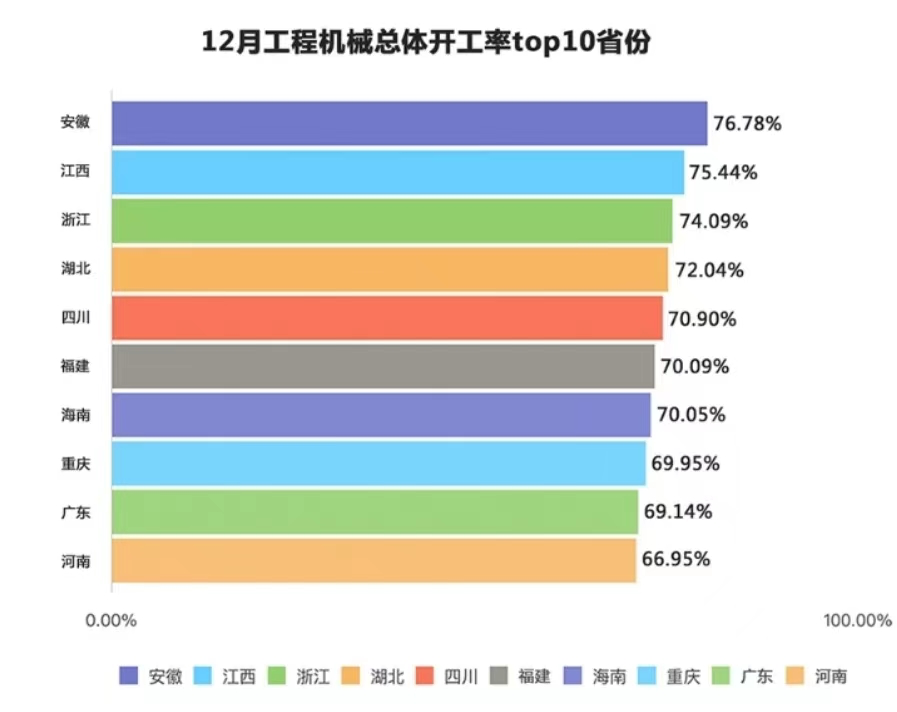 2023年,安徽、江西、浙江、湖北年开工率遥遥领先,分别以76.78%、75.44%、74.09%、72.04%,稳居全国前四。四川、福建、海南三省越过70%,维持较高水平,韧劲十足。