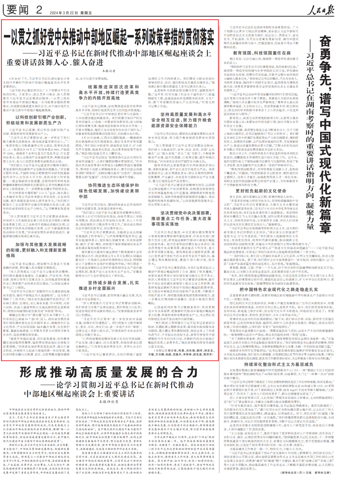 ——习近平总书记在新时代推动中部地区崛起座谈会上重要讲话鼓舞人心、催人奋进
