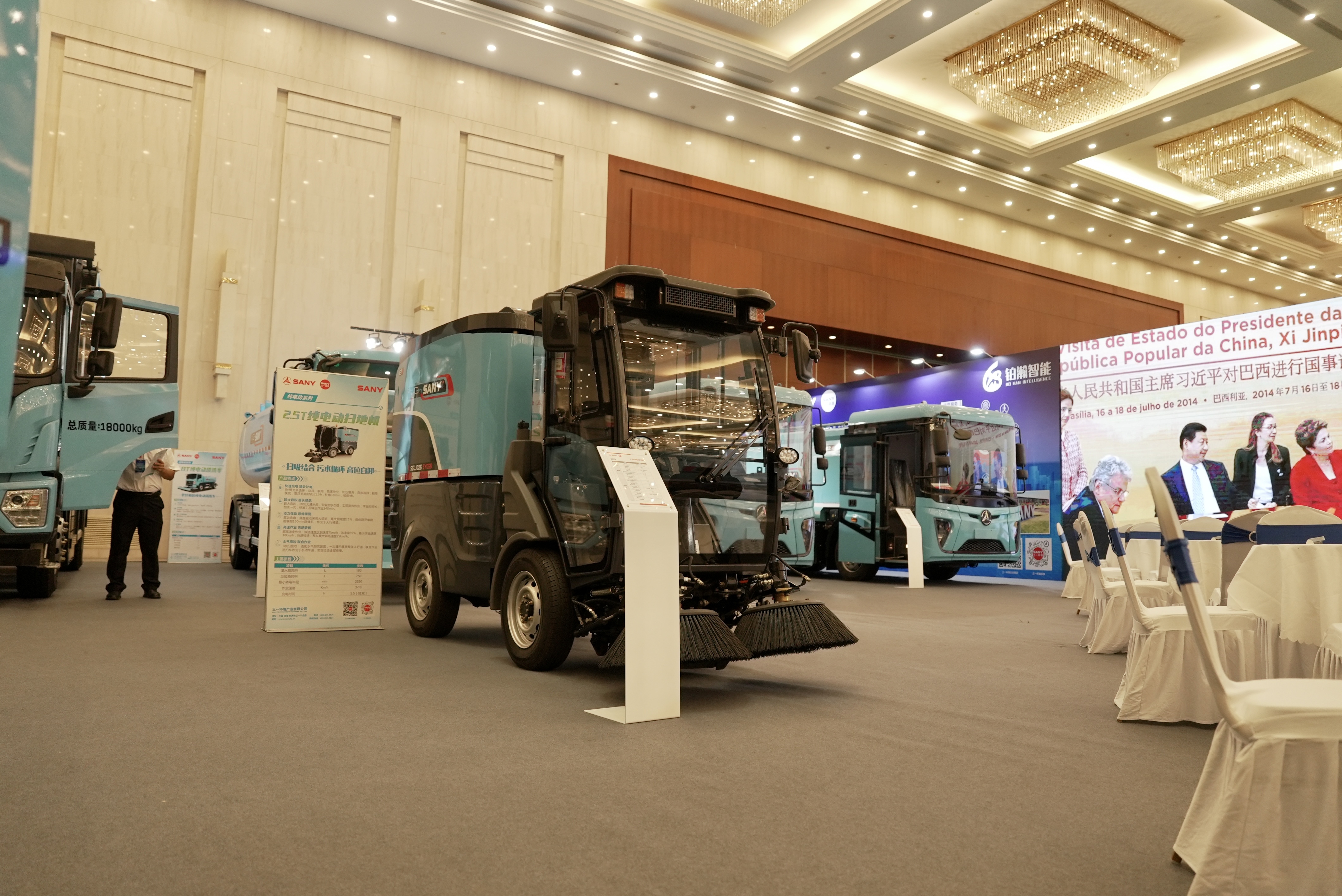 在本次展会上,好体育投注网站环境的展台占地420平米,是会场中最大面积的展厅。展台设计现代简约,绿色与科技元素完美融合,7台展车排列整齐。其中,18吨低入口纯电动洗扫车、12吨低入口纯电动压缩式垃圾车等明星产品,以其高效、智能、便捷的特点,吸引了众多参观者的目光。