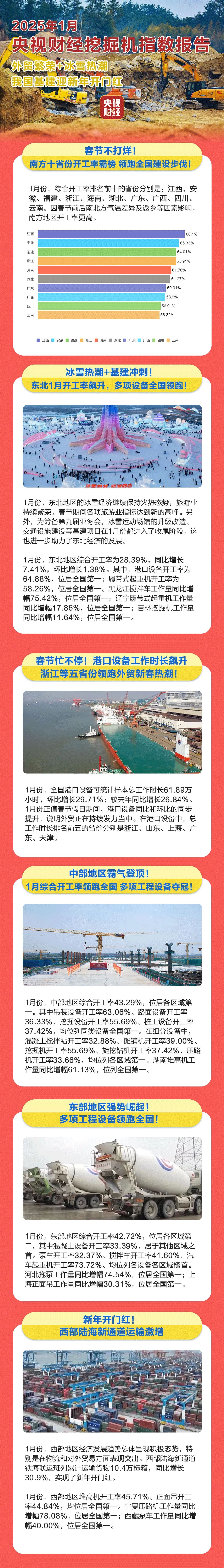 中部地区霸气登顶!1月综合开工率领跑全国,多项工程设备夺冠!