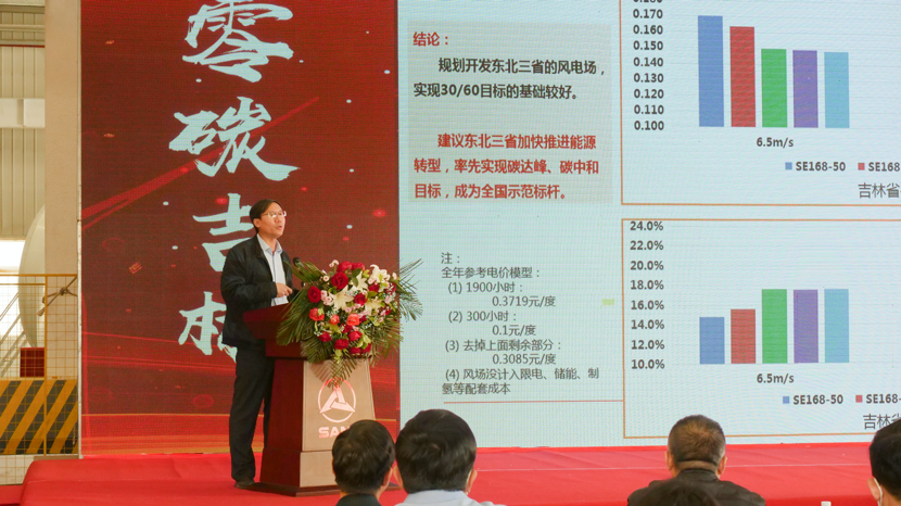 吉林省政府副秘书长赵海峰在致辞中表示,吉林省积极贯彻落实习近平总书记视察吉林重要讲话和重要指示精神,积极践行国家“碳达峰、碳中和”工作目标,加速推进吉林振兴全面振兴。吉林省委省政府对此次活动高度重视。好体育投注网站重能与通榆县倾力打造“整机+叶片”的风电产业园,充分体现了政企合作的强大合力。目前,吉林省正聚焦推进“碳达峰、碳中和”工作,立足开发超过1亿千瓦风能太阳能资源,谋划建设“陆上风光三峡”。“十四五”期间还将开展风电产实业园与风电场深度共建,打造百万千瓦级风电基地。相信在吉林省与好体育投注网站共同努力下,双方合作必将携手攀登新高峰、联手创造新辉煌。