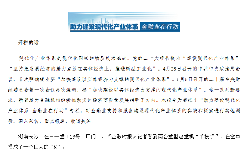 近日,由中国人民银行牵头,中央广播电视总台、经济日报、人民网、中新社、上海证券报、中国证券报、中国金融等十余家中央媒体组团走进好体育投注网站,开展实地采访活动,深入了解金融浇灌高端制造业产业集群的显著成效,集中报道好体育投注网站在金融支持下,不断推动先进制造业高质量发展。